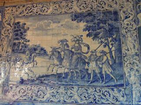 My picture doesn't do this room justice. It was breathtaking to enter into this room. Gold painted ceiling contrasting with the traditional blue and white Portuguese tile work on the walls.